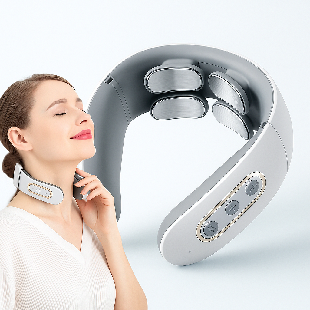 Elysora Boyun Masaj Aleti modern teknolojiyle geliştirilmiş, elektrik stimülasyonu ve ısı terapisi sayesinde boyun ve omuz bölgesindeki kasları rahatlatan yenilikçi bir cihazdır. Günlük yaşamın getirdiği stres, uzun süreli bilgisayar kullanımı veya yanlış duruş nedeniyle oluşan boyun ağrılarına karşı etkili bir destek sunar.